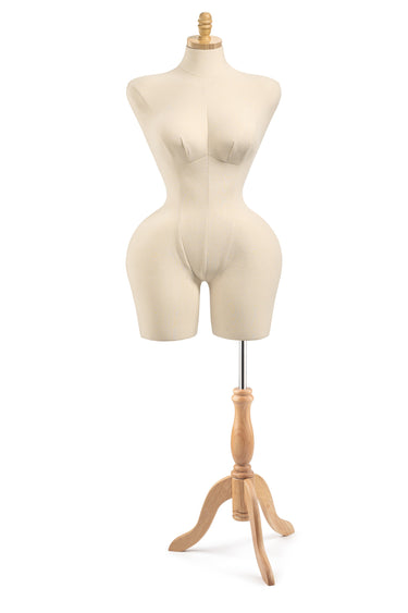 Unleash your creativity with our Display Dress Form, designed for both visual display and light design work. Featuring a modern silhouette, solid wood base and finial, and durable canvas exterior, this form is ideal for showcasing garments.