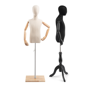 Built for display form use but can also be used for design. Male torsos are available in either natural canvas or black jersey. All of our child display forms have a single pole connector slightly off the center of the underside which allows these torsos to be used with pants/ underwear as well.
