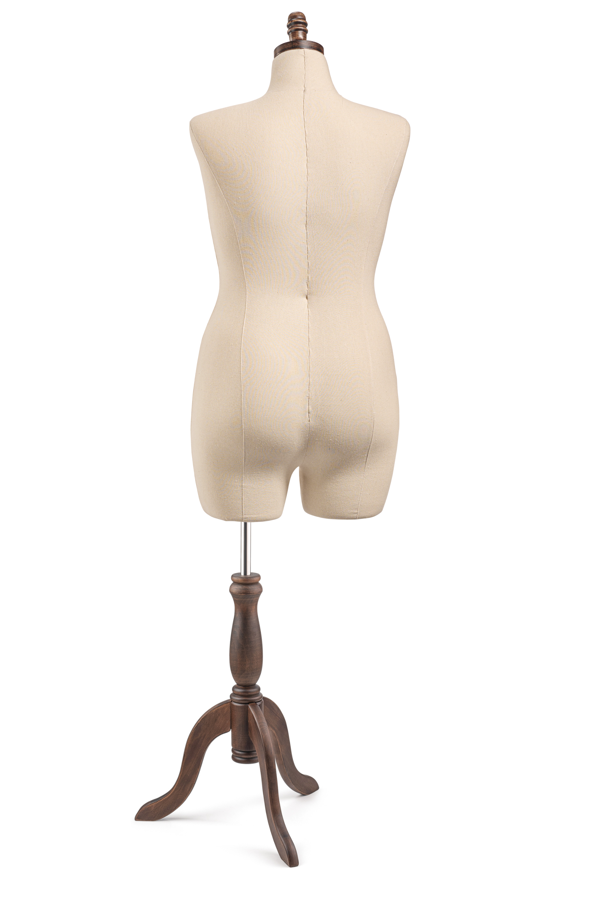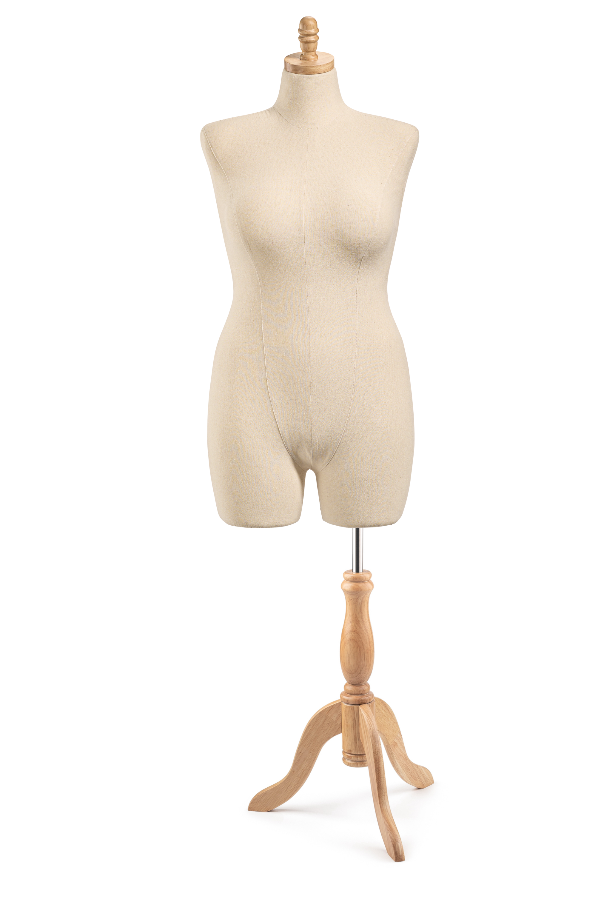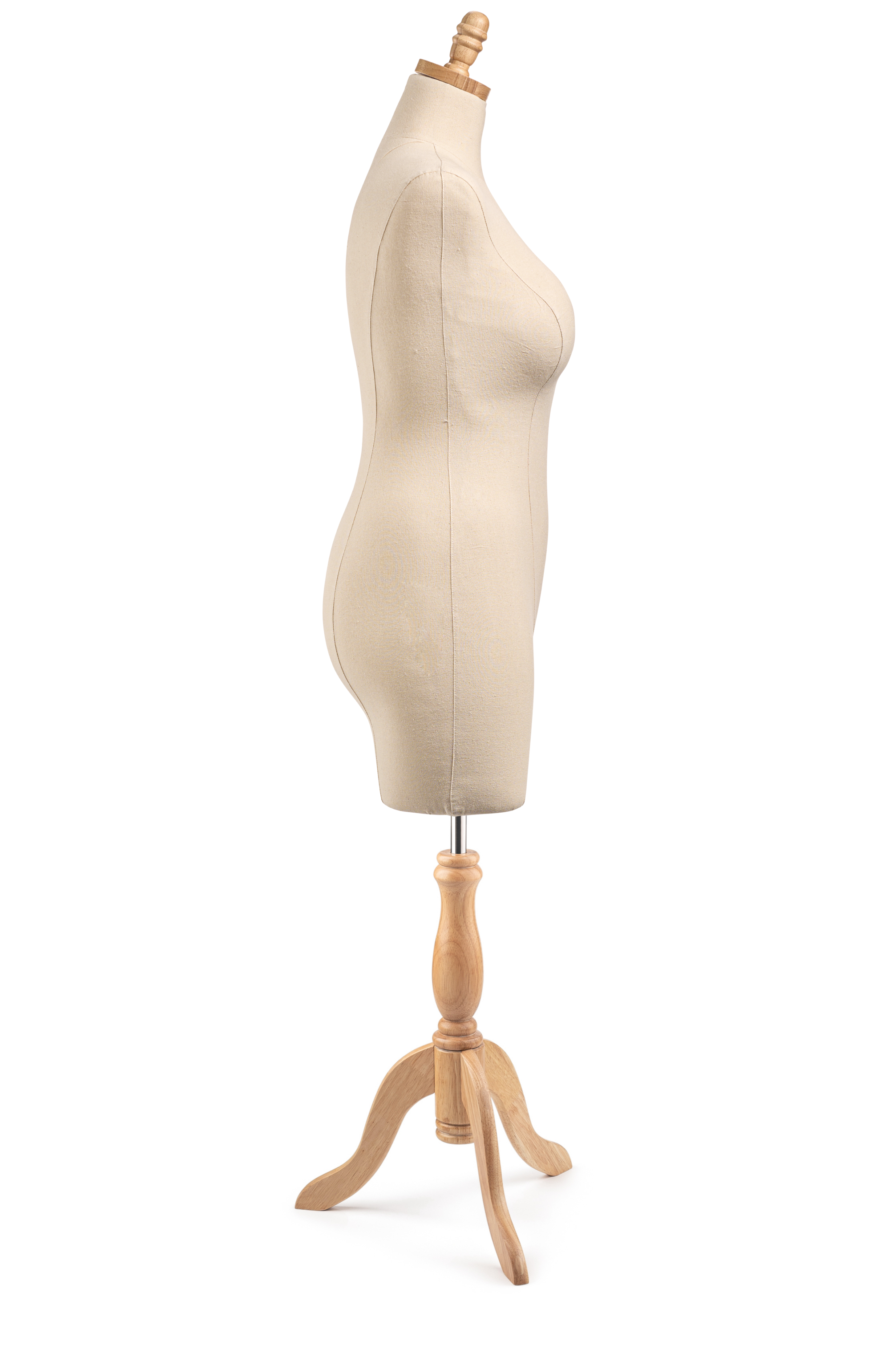 Unleash your creativity with our Display Dress Form, designed for both visual display and light design work. Featuring a modern silhouette, solid wood base and finial, and durable canvas exterior, this form is ideal for showcasing garments.