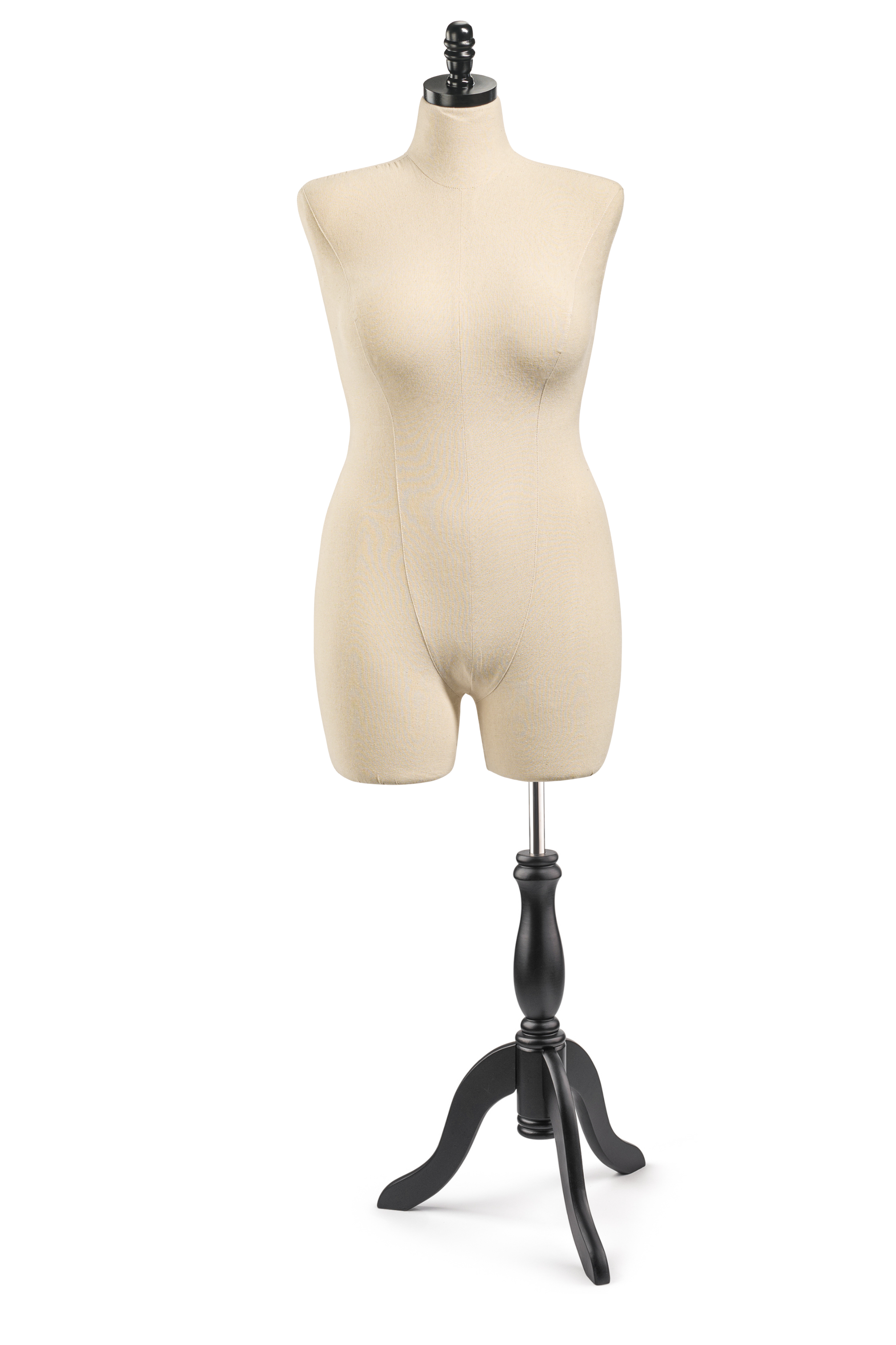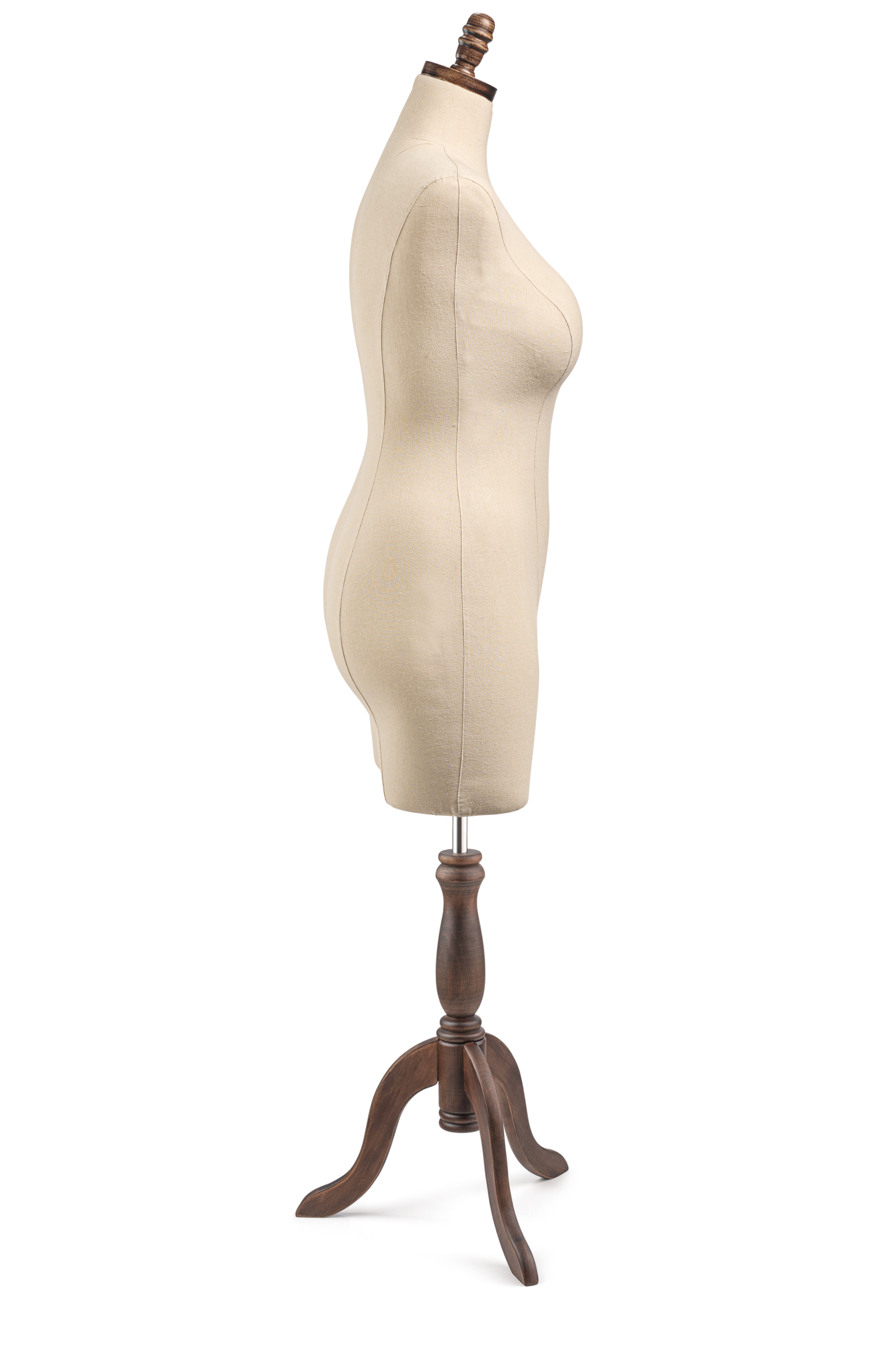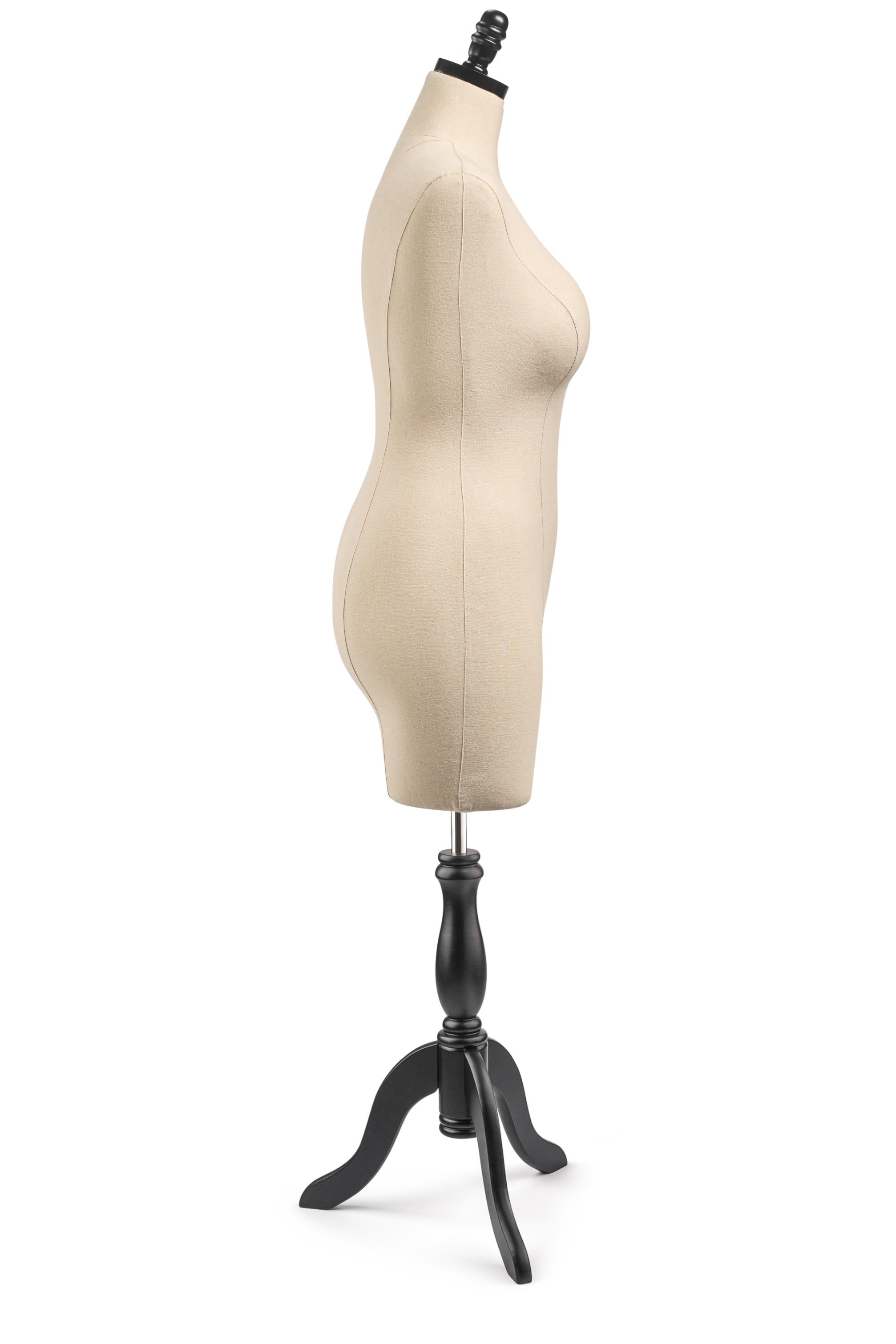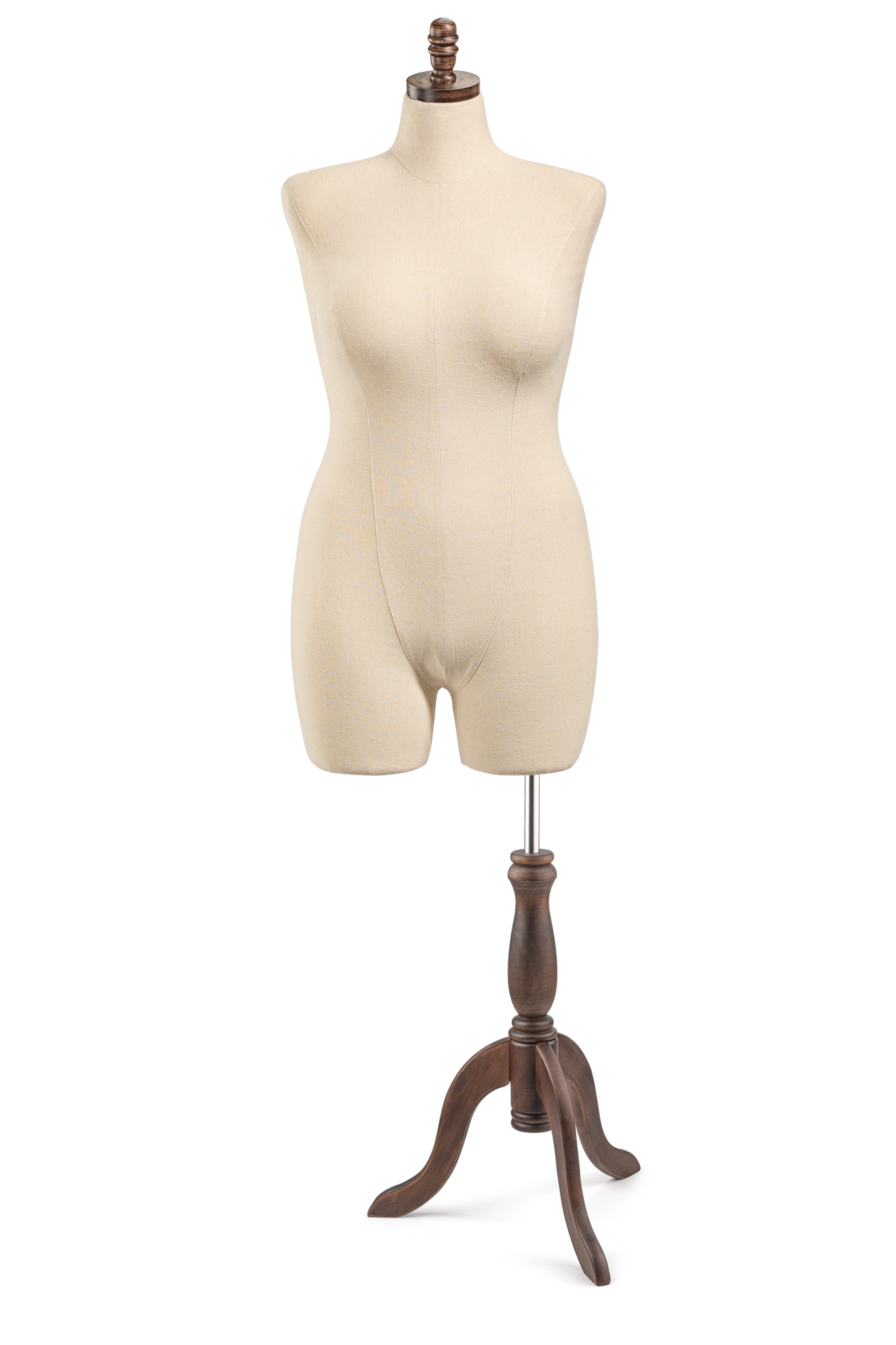 Unleash your creativity with our Display Dress Form, designed for both visual display and light design work. Featuring a modern silhouette, solid wood base and finial, and durable canvas exterior, this form is ideal for showcasing garments.