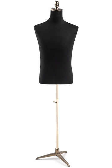 The torso is built around a durable plastic inner core, layered with dense foam for easy pinning, and wrapped in black jersey fabric for a clean, professional finish.